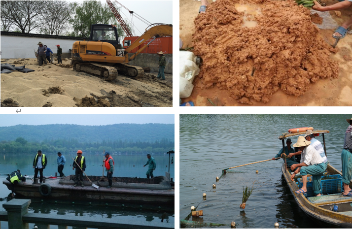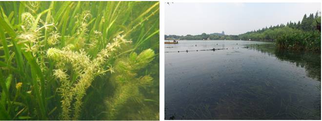 以中科院水生所吴振斌研究员学科组为主的西湖科研团队针对西湖“香灰土”底质等不利于沉水植物恢复的技术难题,将改性矿物基材料制备成环保型复合基底改良剂和沉水植物的种植载体,研发了针对不同底质生境的生态型基底改良技术和沉水植物恢复技术(图1),并成功应用于杭州西湖(图2、图3)。开展了杭州西湖小南湖基底改良和沉水植物恢复示范区的六年长期效应评估。