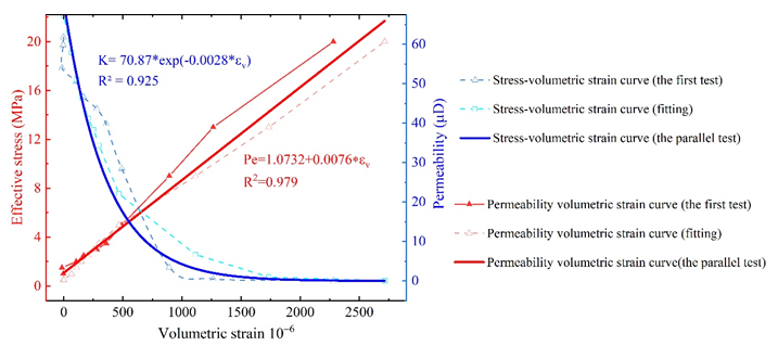 针对这一问题,中国科学院武汉岩土力学研究所二氧化碳地质封存研究团队在断层内部(伊利石断层泥和页岩断层面)和断层外部(环向和轴向)埋设高精度光纤布拉格光栅传感器,采用恒静水围压应力模拟断层在原始地应力环境下,通过改变静水围压应力模拟断层受到应力扰动,结合压力脉冲法连续同步测量应力扰动下断层的内外部应变响应和渗透率演化规律。结果表明:应变和渗透率之间没有明显的关系,渗透率主要由有效应力控制;当原始地应力恒定时,未固结的断层泥会产生明显蠕变现象;渗透率演化规律与有效应力呈明显的指数关系。此外,发现当有效应力小于原始地应力时,断层会产生明显的界面流,类似于流体在断层破坏区的流动;当有效应力大于原始地应力时,断层泥的法向应变不仅控制着断层整体结构的体积应变,而且还控制着整体渗透率的演化规律;最后,在应力扰动下,断层厚度方向的变形最大。因此,当储层开发过程中无法避免对断层的扰动时,应首先避免断层泥厚度垂直方向的应力扰动。该研究为地质工程开发和建设中断层受到扰动时的断层封闭性和结构稳定性评价提供了技术和理论支持。