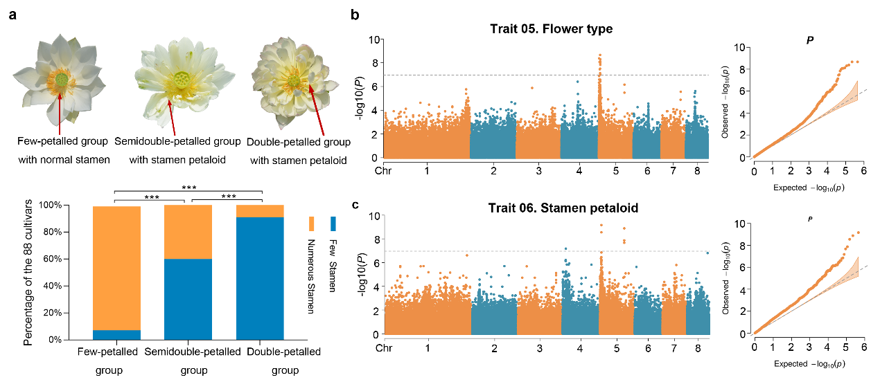 图 单瓣重瓣(雄蕊瓣化)的全基因组关联分析遗传定位