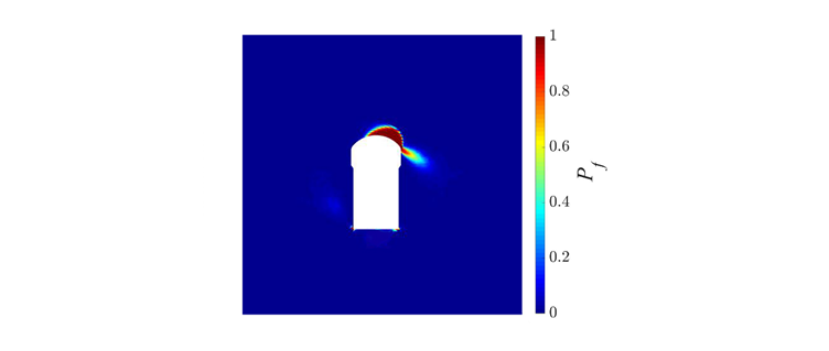 针对这些问题,中国科学院武汉岩土力学研究所智能岩石力学组研究人员开展了3个方面的研究工作:(1)提出了基于贝叶斯理论的岩体力学参数评估方法,借助岩体的超声波速数据,将工程经验作为先验知识融入推断模型,同时考虑模型不确定性、测量误差等因素的影响,利用马尔可夫链蒙特卡洛算法抽取贝叶斯后验分布样本,实现对岩体力学参数的概率表征,该方法获得的岩体力学参数更接近实测值,尤其在小样本条件下更具优势(图1);(2)基于获得的岩体力学参数概率分布,结合蒙特卡洛算法和数值模拟获得洞室开挖变形的概率分布,依据变形值发生概率将预警指标分为安全等级、预警等级和危险等级三个区间(图2),创新了基于概率阈值划分大型地下洞室岩体工程施工监测预警指标方法,通过对泸定硬梁包水电站主厂房监测变形数据进行分析,证明该方法完全适用于现场围岩稳定性评估和支护决策;(3)基于随机场理论构,创新了建地下洞室开挖围岩失效范围概率计算方法(图3),实现了地下洞室开挖高风险区的识别。