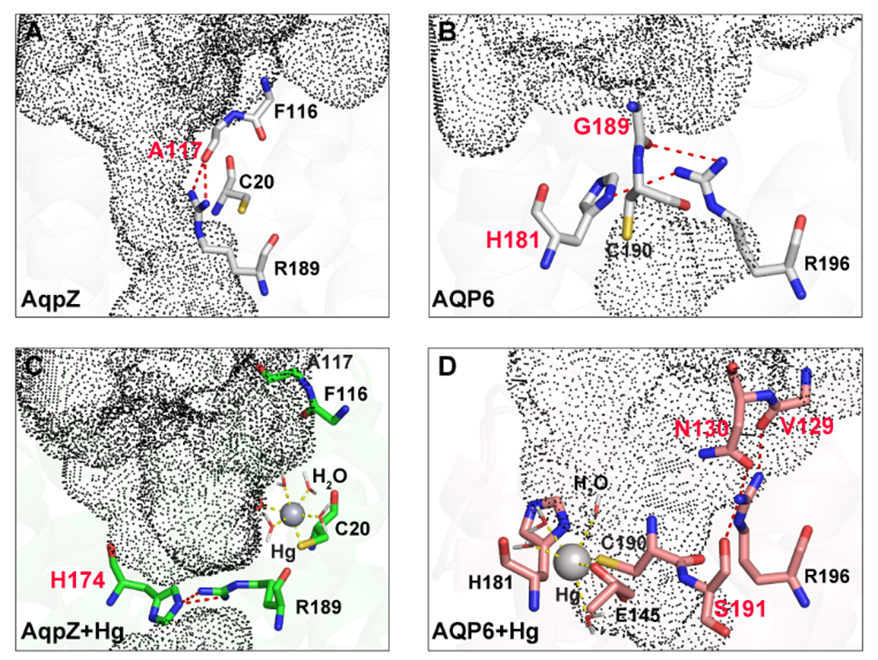 AQP是一类广泛存在于动物、植物与微生物中不可或缺的膜通道蛋白。AQP与人体的许多生理过程密切相关,其功能的异常可能导致人类严重的疾病。AQP功能调节剂在水肿、癌症、肥胖、脑损伤、青光眼等疾病中具有治疗潜力。汞离子对AQP功能具有调控作用,既能抑制AQP的通水速率,又能激活AQP的通水速率。然而到目前为止,人们对汞离子相反调控AQP功能的分子机制仍然知之甚少,阻碍了AQP功能调节剂的设计和开发。