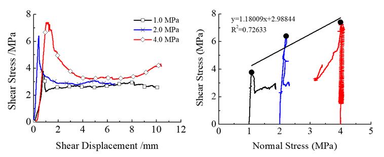 项目聚焦珊瑚礁覆盖岩层中钻孔灌注桩侧阻力发挥机制,针对砂屑结构礁灰岩岩芯,利用RJST-616型岩石结构面剪切试验仪,开展恒定法向刚度条件下的礁灰岩-混凝土黏结面剪切特性试验研究,探究桩-岩界面相互作用机理。研究结果表明,由于水泥浆在高孔隙度砂屑灰岩中的填充加固作用,桩-岩界面抗剪强度增强,剪切破坏面均发生在砂屑灰岩内部,表现出与常规陆源岩石完全不同的剪切破坏特征。当法向刚度值为2.0MPa/mm,初始法向应力为1~4MPa时,砂屑结构礁灰岩-混凝土界面的峰值剪切强度为3.78~7.40MPa,残余剪切强度为2.26~3.25MPa,桩-岩界面的峰值剪切强度及残余剪切强度均与初始法向应力呈正相关性。桩-岩界面在不同初始法向应力条件下的剪应力演变趋势较为统一,可简化为变形协调、剪应力增长、剪应力跌落以及滑动摩擦等四个阶段。峰后剪切破坏面的剪胀量受初始法向应力影响显著。当初始法向应力大于临界值时,桩-岩界面在剪切破坏后急剧剪缩,法向应力跌落。在滑动摩擦阶段,剪切破坏面的残余剪切强度受剪切破坏面的形态、粗糙程度以及法向应力等因素综合影响。