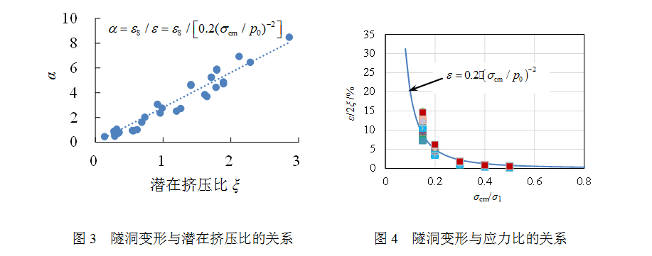 (3)针对软岩体,系统总结了现有挤压变形评价指标,考虑岩体个性差异,提出了潜在挤压比指标(图3和4),建立了基于潜在挤压比的挤压程度评价方法和地应力水平评价标准。