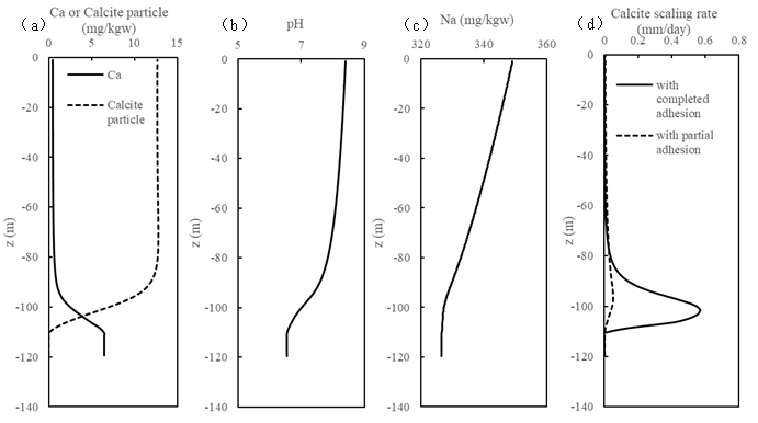 为此,中国科学院武汉岩土力学研究所科研人员首先基于质量、动量和能量守恒方程,并联合水气速度差模型(漂移流模型)建立了含CO2的高温流体由井底到井口相变流动过程的定量评价模型,然后建立了井筒中的水-气-结垢物的反应溶质运移模型和固体在井筒壁上的吸附模型,并在国际知名软件TOUGHREACT框架内开发了相关的计算模块和软件,可以评价高温地热井筒结垢类型、位置和速率,为防垢除垢提供重要支撑。该模块已经成功用于评价西藏典型高温地热井的结垢评价。