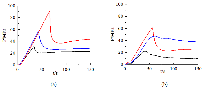 最后开展了不同真三轴应力状态下实时高温(最高300℃)水力/CO2压裂试验,并采用光学显微镜、核磁共振技术与CT扫描等观测技术,从微观到宏观研究了压裂后试样的孔隙和裂缝分布特征并揭示了高温下压裂机理的转换。高温下压裂裂缝形态发生转化,在高温下形成包含多种尺度裂隙的云状裂缝。推导了基于剪切破坏的压裂破裂压力预测模型,在干热岩中,轴向应力较大,基于拉伸破坏的破裂压力预测模型与基于剪切破坏的破裂压力预测模型计算值的差距随着温度增加而逐渐增大,在有效环向应力远未达到抗拉强度的情况下发生剪切破坏。压裂裂缝拓展能量耗散机制随温度升高发生转换,在室温下以粘性控制为主,高温下以韧性控制为主。