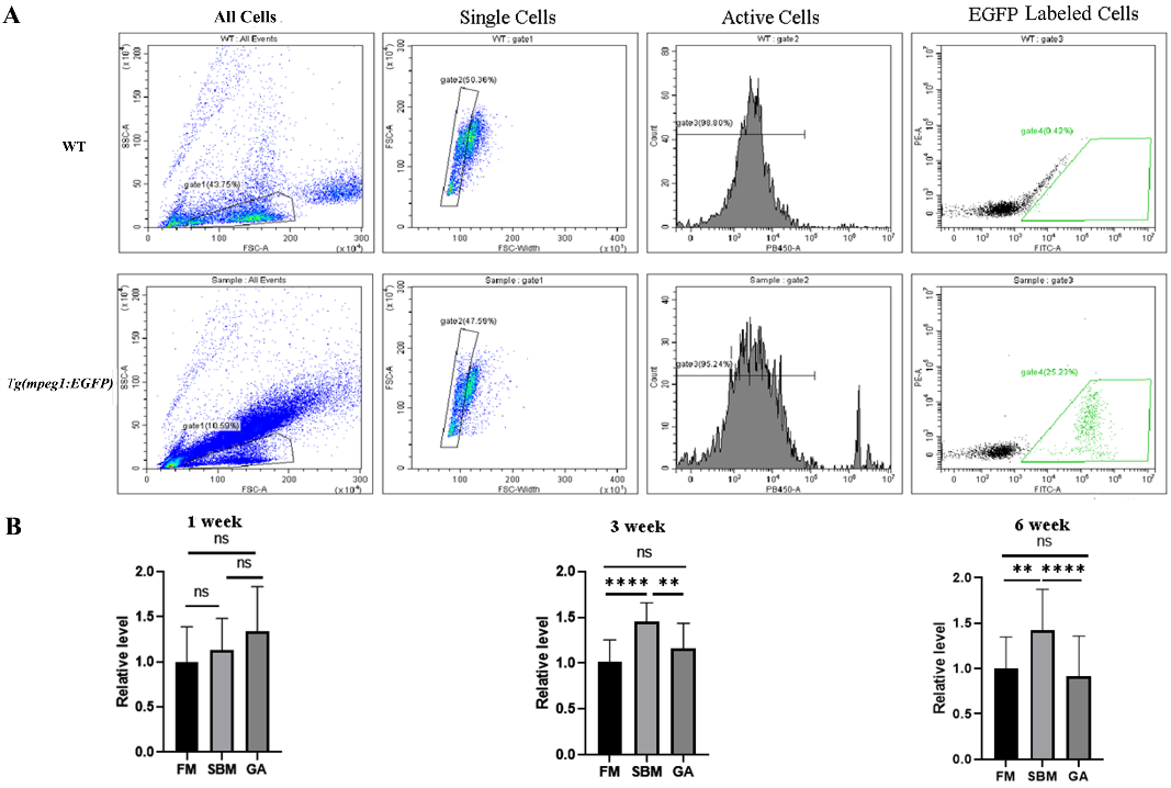 近日,中国科学院水生生物研究所鱼类功能基因组学学科组研究人员,基于已在Frontiers in Physiology发表的沙棘抗鱼类肠肝炎症的前期结果,将其核心成分——没食子酸,添加入饲料,在斑马鱼食源性肠炎(SBMIE)模型中,对其抗肠肝炎症的效果进行评价,已运用病理评价、免疫基因表达分析、免疫细胞成像和流式细胞术分析,以及多组学分析(转录组、微生物组、代谢组)等方法,揭示了没食子酸在抗鱼类肠肝炎症过程中主要发挥着促进免疫调节和提升抗氧化两个方面的功能。