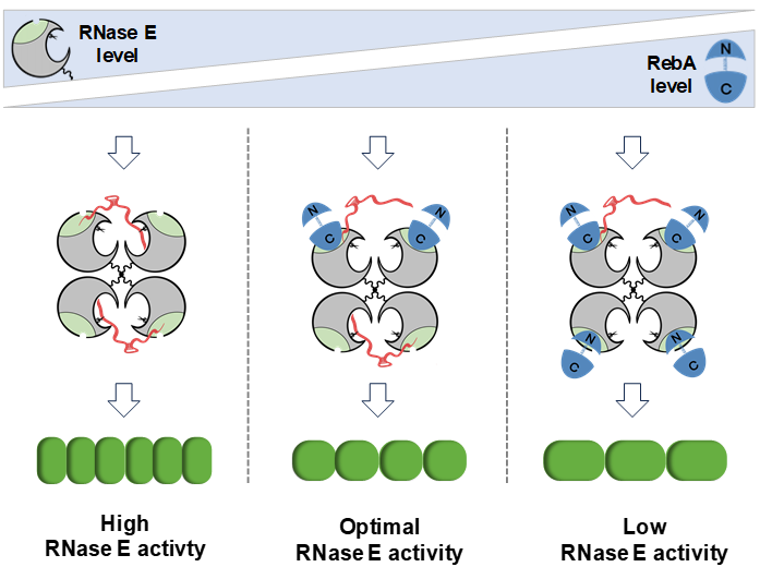 图1:蓝藻中RebA调控RNase E活性,进而调控细胞形态