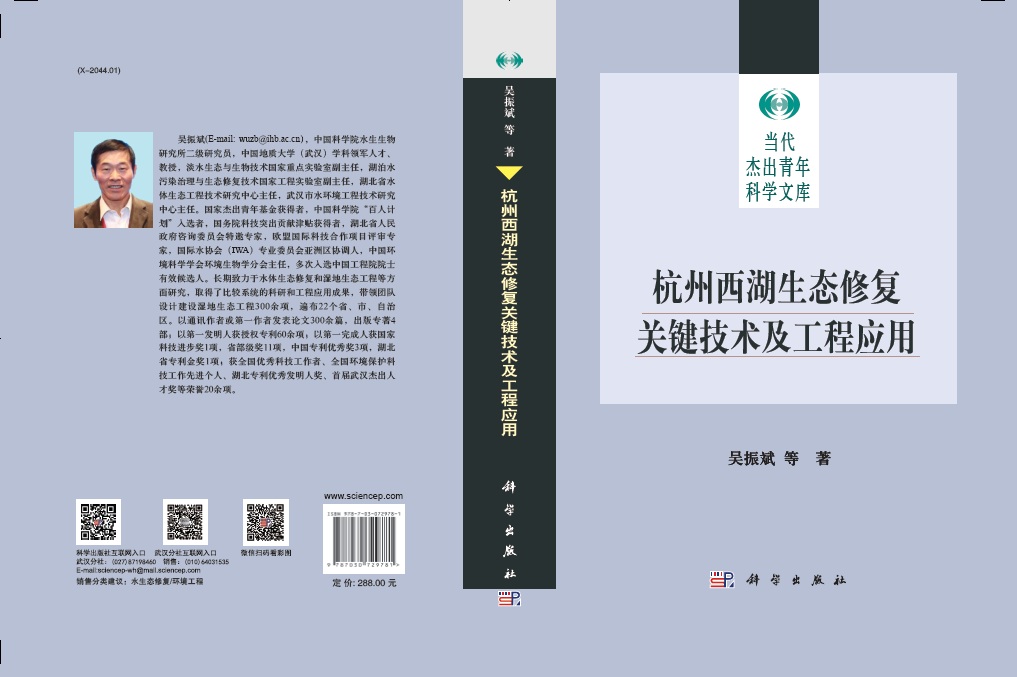 近日,由中国科学院水生生物研究所吴振斌研究员等撰写的专著《杭州西湖生态修复关键技术及工程应用》一书由科学出版社出版。