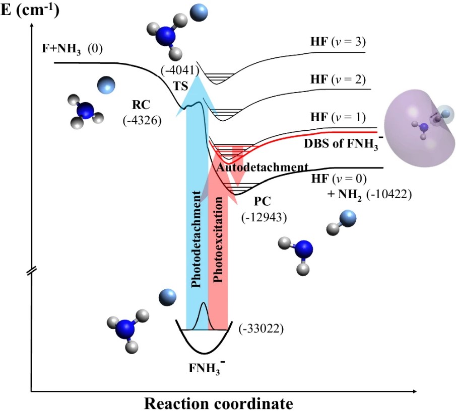 近日,精密测量院理论与计算化学研究组副研究员宋宏伟与清华大学教授宁传刚团队、新墨西哥大学教授郭华合作,利用FNH3-负离子偶极束缚态的自脱附现象,成功观测到F + NH3反应过渡态附近弱弗兰克-康登区域的束缚态和Feshbach共振态,为研究反应过渡态提供了全新的观测手段。相关研究成果发表在国际学术期刊《自然-通讯》(Nature Communications)上。