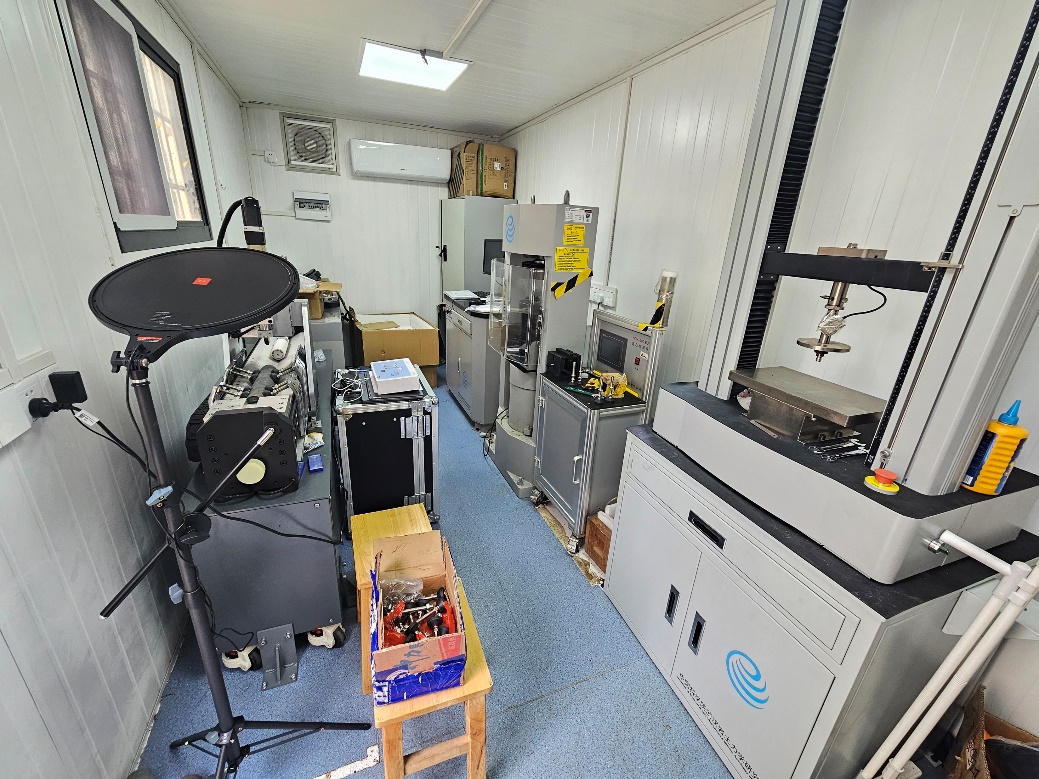 为解决以上问题,武汉岩土所岩体工程多场耦合效应研究团队研发了岩石力学方舱实验室(图1),搭建了车载式岩石力学参数测试综合平台,在工程现场开展高效的物理力学试验。考虑岩体工程现场地质构造的复杂特性,分别针对全尺寸岩芯、标准尺寸岩样、小尺寸岩块等不同尺度,研发了岩心连续刻划、毫米级压痕等岩石力学测试新技术,突破了传统压缩试验制样要求高、测试效率低、离散性大的局限性,能够在不破坏岩块完整性的情况下精准测出强度参数,快速且准确获取岩石孔隙分布、波速、抗压强度、粘聚力、内摩擦角、泊松比、断裂韧性、硬度、地应力等力学参数,以满足不同地质环境下的岩石力学参数需求。