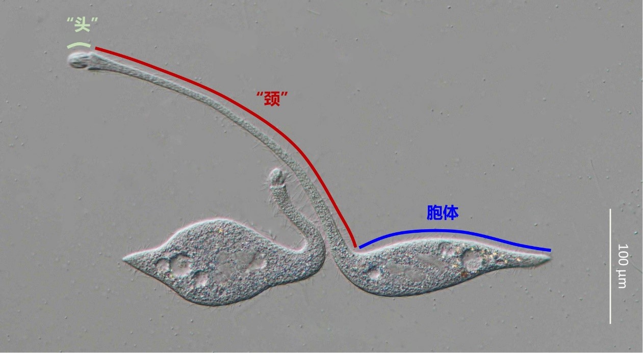 长吻虫通过细胞颈不断伸缩实现360度的空间搜索
