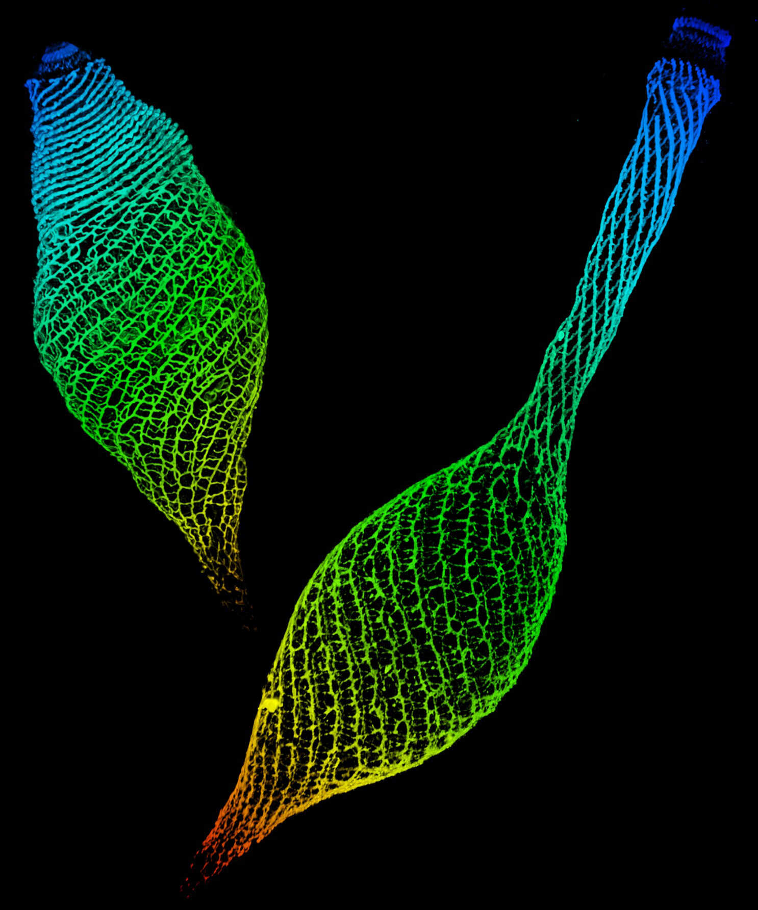 细胞颈收缩(左)和伸长(右)两种状态下的长吻虫细胞