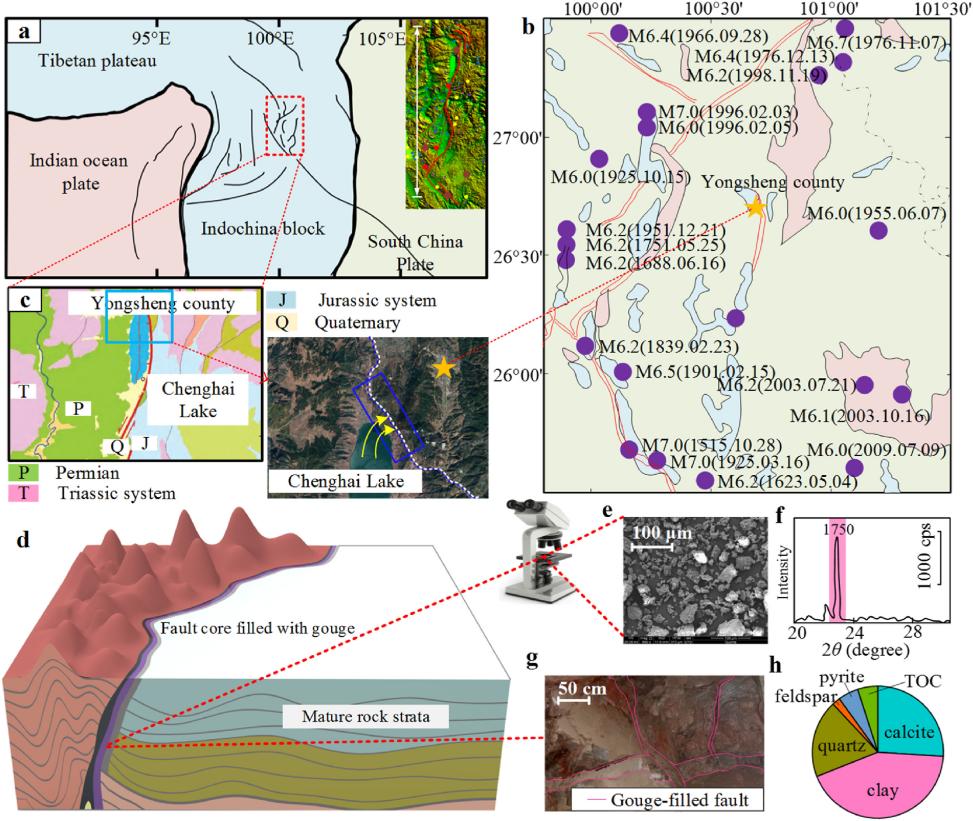随着浅部煤炭资源日渐减少,我国中东部矿井逐步向千米深部延伸。由于地质历史上长期构造运动的反复剪切挤压作用,深部地层频频出现大范围断层破碎带。以淮南矿区为例,矿区范围内落差大于20米的断层达600余条,每平方千米平均0.4条,其中延伸长度大于1000米的断层占总数的62.5%。同时,随着国家“一带一路”战略的实施,我国正在大规模建设公路、铁路和跨流域调水工程,大量隧道需穿越构造密集发育的深部地层,如:川藏铁路沿线断层密集发育,穿越大量深大活动断裂带(澜沧江断裂带,怒江断裂带、嘉黎断裂带、西兴拉断裂带等等)。深部断层破碎带赋存高构造应力,围岩破碎软弱,结构复杂多变且多富含地下水,通常夹杂有大量断层泥,多以岩屑、粉细砂、黏性颗粒等为主,深部断层带围岩高应力与低强度矛盾突出。因此,当隧(巷)道穿越深部断层带时,米级大变形和失稳破坏屡屡出现,造成重大经济损失和安全隐患。