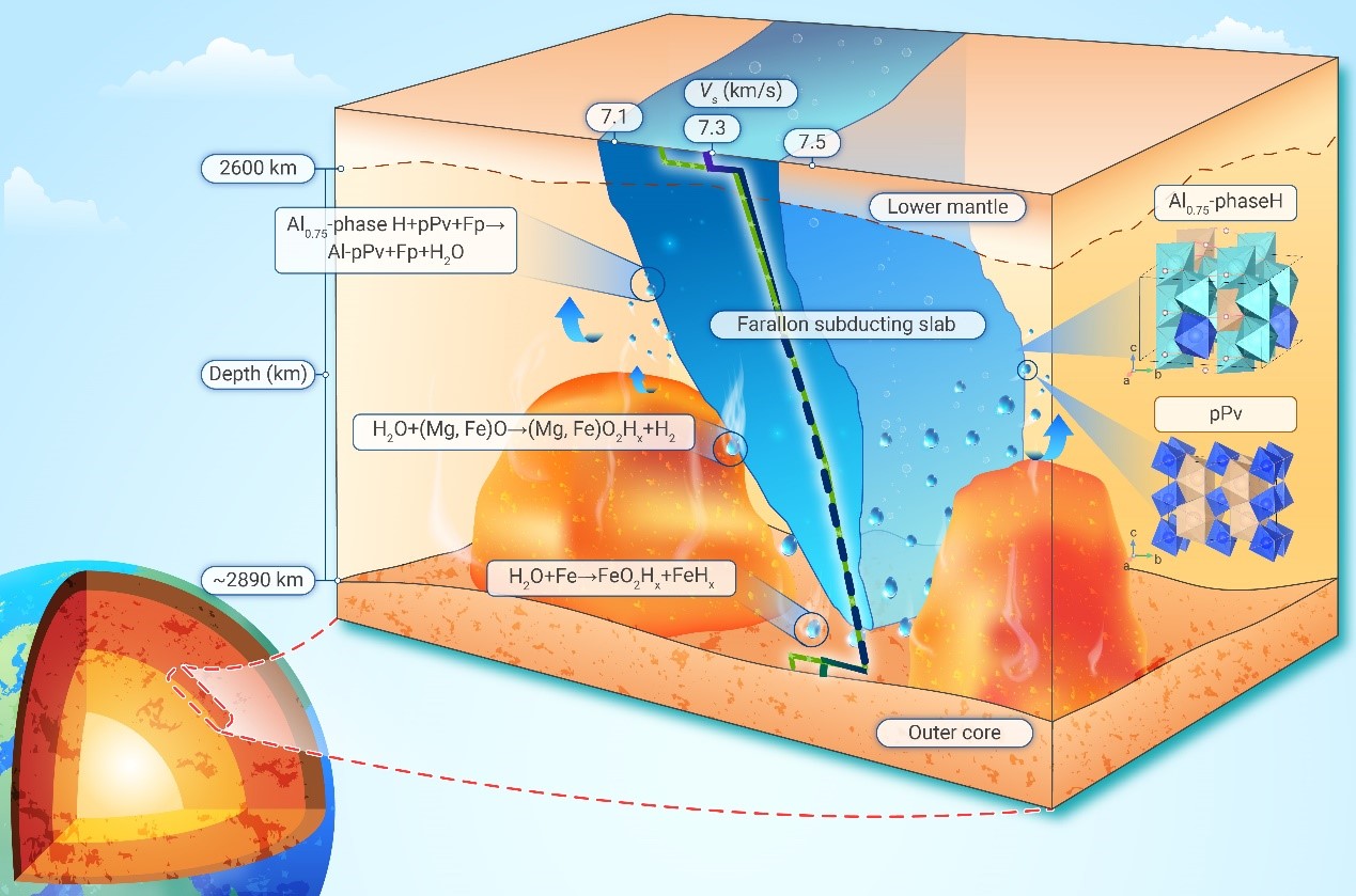 近日,精密测量院孙和平院士团队、倪四道院士团队与北京高压科学研究中心合作,基于第一性原理计算,证实了少量含水矿物的脱水可以导致地震学观测的核幔边界层(以下简称D′′层)内局部区域波速持续增加的特性。研究成果于1月6日发表在国际知名期刊The Innovation上,并被作为封面推荐文章。