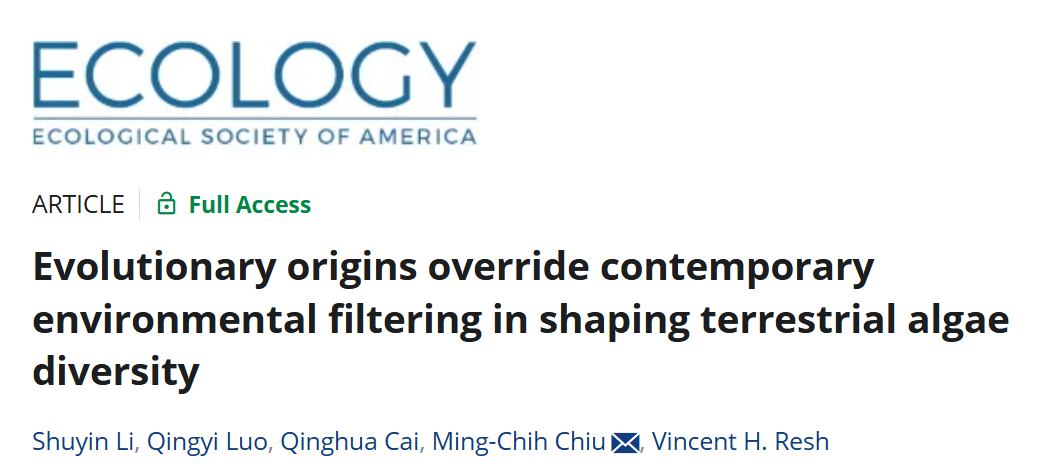 近日,中国科学院水生生物研究所蔡庆华研究员团队在生物多样性成因研究领域取得重要进展。该研究以题为"Evolutionary Origins Override Contemporary Environmental Filtering in Shaping Terrestrial Algae Diversity"的论文,正式发表于国际知名生态学期刊《Ecology》。