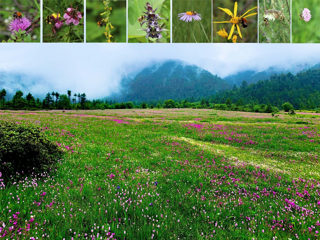 图1 研究群落外貌及代表开花植物和传粉熊蜂