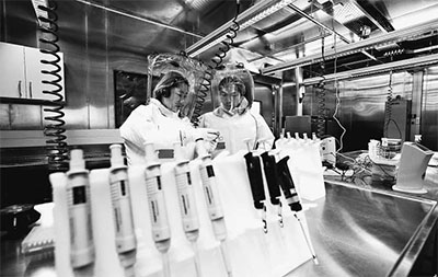 实验室始终是单向气流,呈负压状态。科研人员靠独立的供氧系统呼吸,与外界空气不发生接触