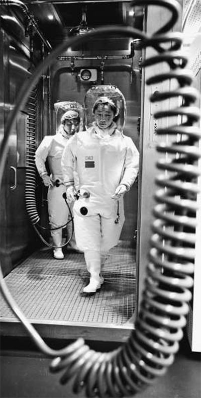 其次,对进入实验室的工作人员保护措施也十分严密。科研人员通常两人一组进入实验室,穿着像宇航服一样的正压工作服,并配有独立的供气系统,把研究人员和实验室“隔绝”起来。人员在出来的时候要进行化学淋浴,消除正压工作服表面的一些病原等。
