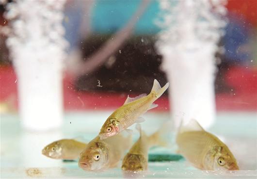 中科院水生所培育的转基因鲤鱼幼苗