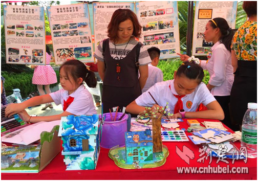 各参展单位在展区内利用科普展板、科普知识宣传小册子、科普实物以及模型等,向过往群众普及科学知识,倡导科学生活。来自武汉市江岸区长春街小学五年级的小学生刘昱池和阮景晖向记者展示她们的建筑模型,她们讲到,这是课外的兴趣活动,平时经常参加学校组织的各类兴趣活动班。“作为武汉市江岸区建筑模型基地学校,我们学校在全国屡屡获奖,此次的建筑模型展览作为省赛来参加,接下来我们还代表湖北省参加全国的比赛。”该校带队老师徐慧介绍。