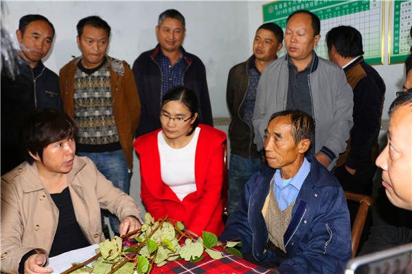 被十八洞村民称为最接地气的科学家——中科院武汉植物园猕猴桃专家钟彩虹,现场指导村民猕猴桃种植技术。王振红摄