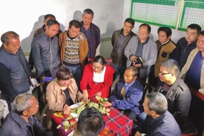 · 图片说明: ▲近日,钟彩虹再次来到湘西十八洞村,将果农召集到一起,向他们面授猕猴桃种植要领。