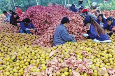 · 图片说明: ▲蒲江县果农在分拣刚采收下来的猕猴桃。
