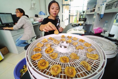 · 图片说明: ▲四川阳光味道果业公司对猕猴桃进行科学检测。