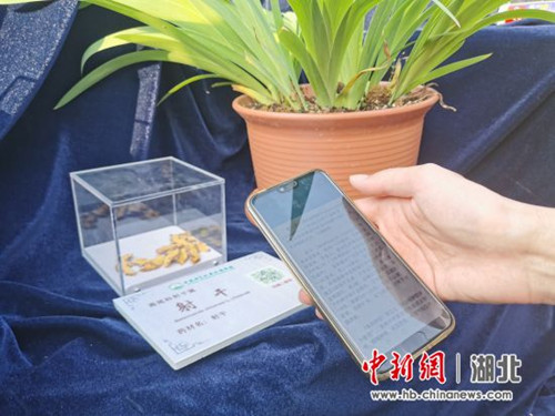 陶盆中,植株如扇子般的射干正盛放着美丽的花朵。一旁的透明匣子里,用射干干燥根茎炮制成的中草药成品射干正等待人们的欣赏。展览将药用植物活体及其中药材成品进行组合展出,方便公众对比认识。每个展出药用植物的铭牌上还配有二维码,公众通过手机扫一扫,即可了解该植物的生理特征、产地、入药部位、功效等详细内容。此外,武汉植物园还通过制作科普展板和手册的方式,介绍了“增强免疫力的药用植物”、“清咽利肺药用植物”“清热解毒药用植物”等多个类别药用植物的知识。