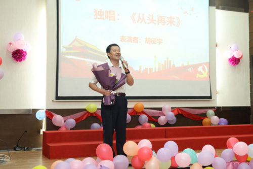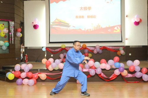 晚会开始前,由党委书记解绶启致辞。随即,由Happy Science Happy Song合唱团的歌曲《党啊亲爱的妈妈》、《我和我的祖国》拉开帷幕,动听的歌曲,唱出了中华儿女的心声;解绶启书记的太极拳表演,刚柔相济,其动作如行云流水,身形如若水蛟龙,获得掌声连连;胡征宇书记的《从头再来》铿锵有力,触动心弦;张磊老师带来京剧《薛刚反唐》选段——《徐策跑城》,让现场观众领略了传统艺术的魅力;徐毓轩小朋友带来的街舞《Stay》惊艳亮相,以强烈的视觉冲击引爆全场;来自巴基斯坦的Dr. Noor Huda为我们带来黄梅戏——《女驸马》,来表达对中国文化的浓厚的兴趣,也说明中国戏曲正在走向世界。