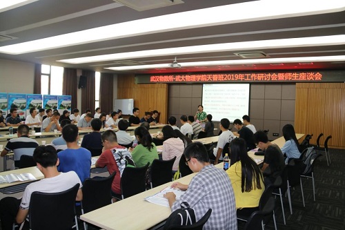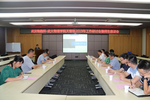 9月11日,中科院武汉物数所与武汉大学物理学院召开天眷班工作研讨会暨师生座谈会。武汉物数所詹明生研究员、王谨研究员、冯芒研究员等8名导师代表、研究生处处长任晓华等管理人员,以及武汉大学物理学院副院长乔豪学、副书记张宇宁以及教师代表张文献等出席会议。武汉大学2016-2018级天眷班学生参加了会议。
