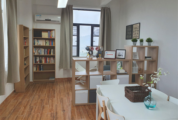 “学生之家”的色彩搭配清新淡雅,环境温馨舒适,让人身心愉悦。目前收藏有各类图书数百册可供同学们借阅,未来还会通过多种途径继续丰富图书种类,增加图书数量。“学生之家”各类配套设施也十分齐全,配置有柔软舒适的卡座沙发、宽敞明亮的讨论桌椅、以及随时取水的饮水机。轻松优雅的装饰风格,可以让学生们放松的看书学习,私密的小空间也是同学们打开心门,倾诉烦恼进行心灵沟通的好地方。经过预约后“学生之家”也可以开展小规模的会议沙龙、素质拓展等专属于小团队的活动。