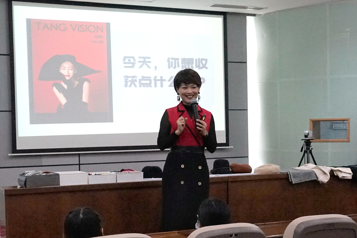 张亦娴首先从服饰风格、色彩、配饰与服饰搭配等方面给大家做了介绍。再结合丰富的例证,着重讲解了不同场合着装要点、规律以及用饰品点亮整体造型的小技巧。现场还邀请三位听众上台,有针对性地结合个人肤色、风格、需求,现场演绎了精彩的搭配和配色技艺,还就大家遇到的搭配困惑给予了耐心解答和具体指导。参加活动的职工及学生积极性很高,现场气氛热烈。