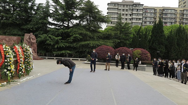 在二七纪念馆内,大家通过陈列的大量珍贵照片、历史文物和文字史料,了解了“二七”革命斗争,体会到革命先烈坚定的共产主义信念和一切行动听党指挥的崇高精神。抗击新冠疫情展区内一张张 “请战书”上朴实而坚定的话语和鲜红的手印,让大家深刻体会到了“党员先锋”四个字的分量与担当。随后,参与活动的全体师生在二七纪念碑前列队肃立,逐一敬献了清菊以寄托对革命先烈的哀思。