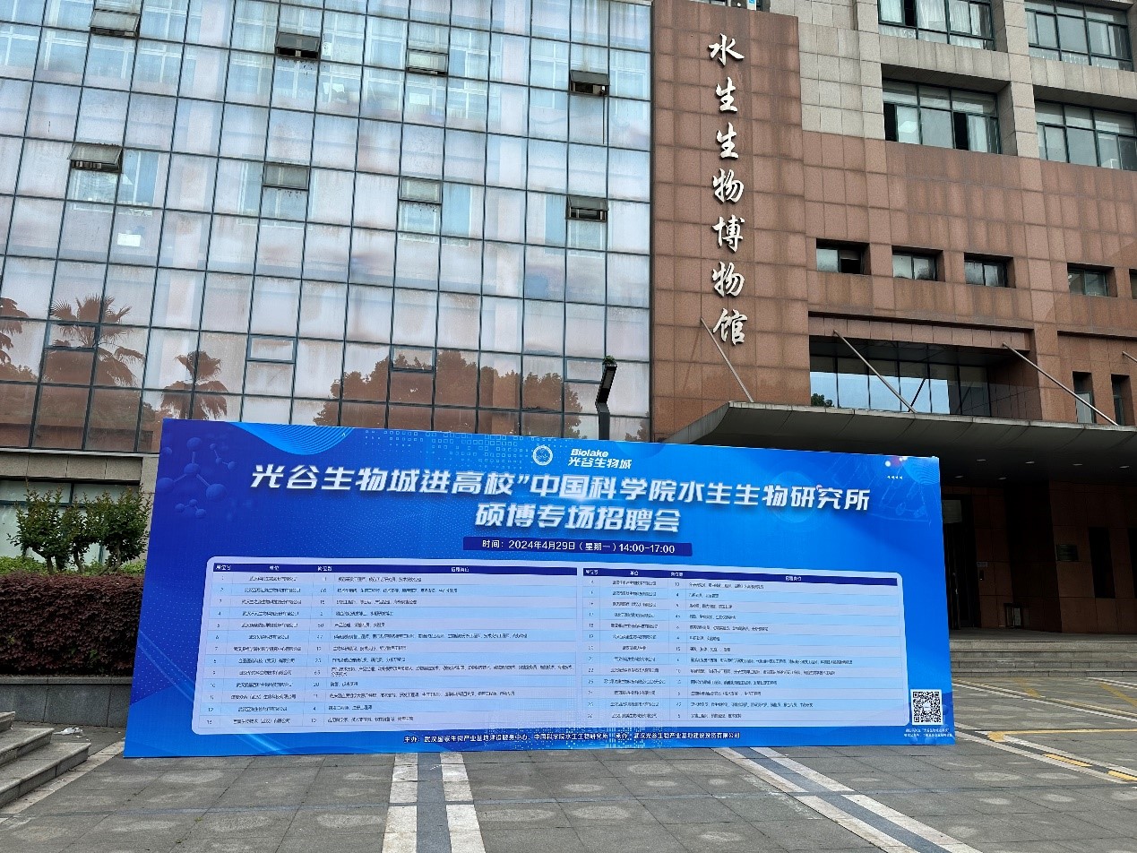 4月29日下午,“光谷生物城进高校中国科学院水生生物研究所博硕专场招聘会”在研究所北门博物馆广场顺利举办。本次招聘会由武汉国家生物产业基地建设服务中心和水生所主办,武汉光谷生物产业基地建设投资有限公司承办。