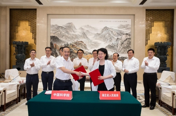 7月16日,中国科学院与湖北省人民政府在武汉市举行科技合作会谈,并签署科技合作协议。中科院院长、党组书记白春礼,湖北省委书记、省人大常委会主任应勇,湖北省委副书记、省长王晓东出席座谈会并见证双方签约。中科院副院长、党组成员张涛与湖北省副省长肖菊华代表双方签署《中国科学院 湖北省科技合作协议》和《“美丽中国专项”示范省项目合作协议》。