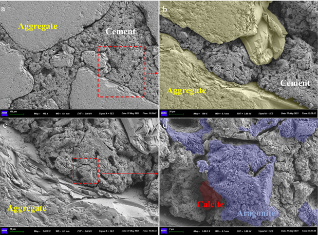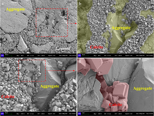 图2 100kPa纯水CO2环境中混凝土碳化28天微观结构图