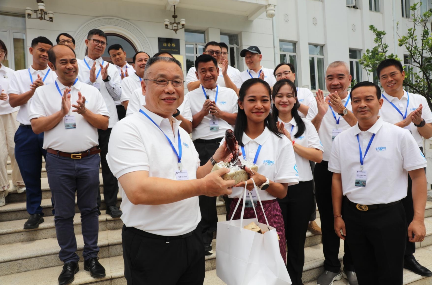 柬埔寨农林渔业部副国务秘书伊姆·拉赫纳向水生所党委书记解绶启赠送礼物