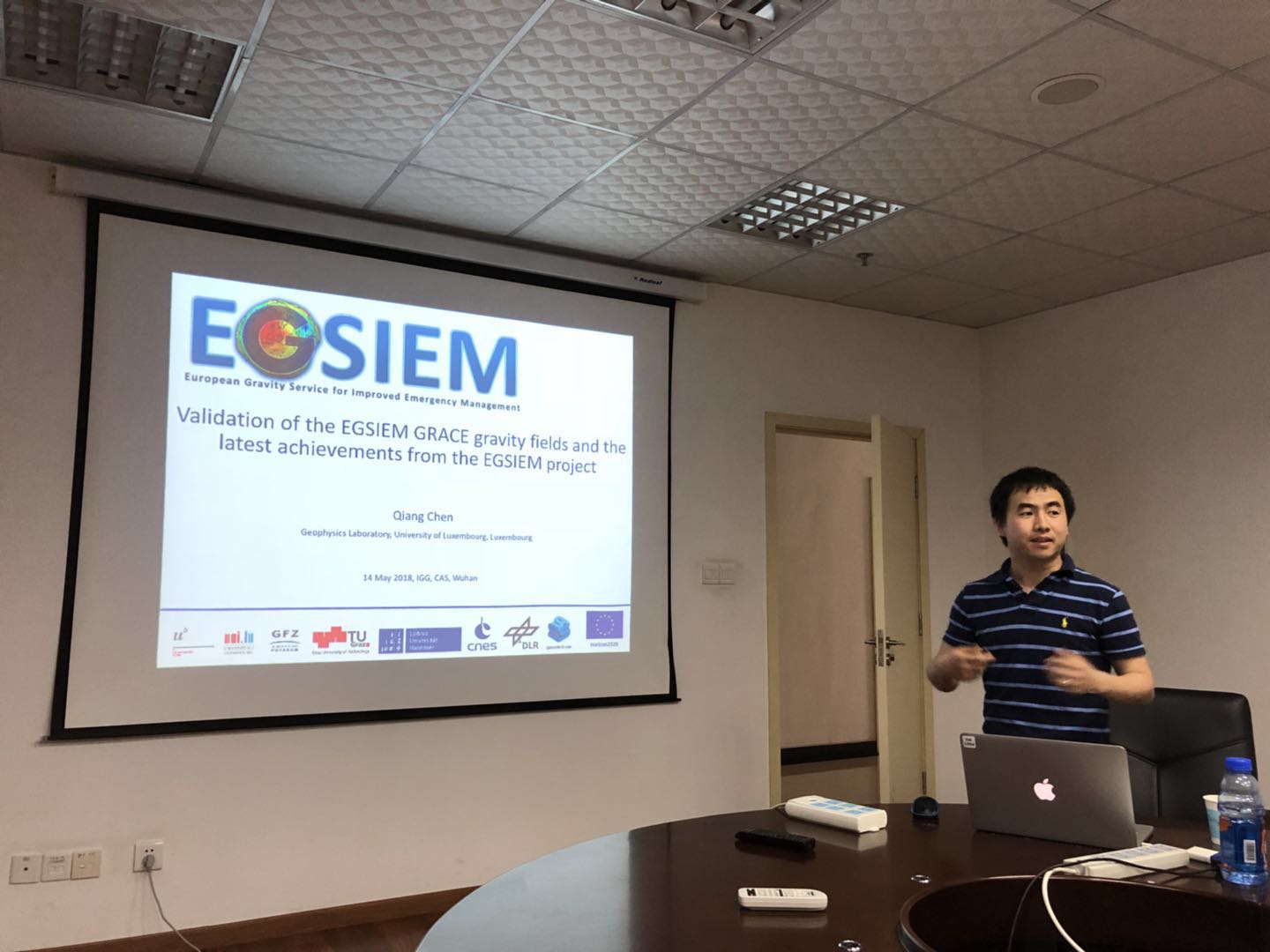 5月14日,应大地测量与地球动力学国家重点实验室邀请,卢森堡大学陈强到中国科学院测量与地球物理研究所交流,作题为Validation of the EGSIEM GRACE gravity fields and the latest achievements from the EGSIEM project的学术报告 。