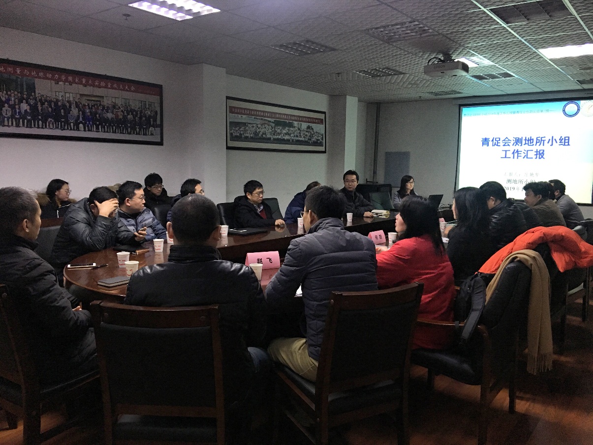 测地所小组历届会员共聚一堂,张亮首先介绍了院青促会总体情况。庄艳华从成员成长情况、2018年工作总结、2019年工作计划3个方面汇报了小组工作,提出了“倡情怀担当、重实干高效”的小组口号,重点从管理制度建设、学术活动、科普、产业化和成果等方面汇报了下一年工作安排。