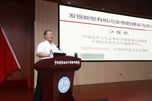 9月15日下午,中国科学院院士、中国科学院生态环境研究中心研究员江桂斌应邀到访中国科学院水生生物研究所。作为水生所90周年所庆系列活动“水生大讲堂”第四期的主讲嘉宾,江桂斌院士作了题为“发现新型有机污染物的理论与方法”前沿研究的精彩报告。本次报告由胡炜副所长主持,副所长(主持工作)殷战、党委书记解绶启、副所长缪炜及百余名科研人员和研究生参加了本次学术活动。