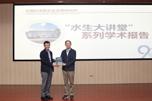 报告之后,殷战所长为李院士颁发了“水生大讲堂主讲人”证书。李院士在所领导等人的陪同下参观了斑马鱼中心、水生生物博物馆和水环境工程中心相关实验室等,并就水生态工程领域工作进行了座谈交流。