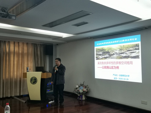 安徽师范大学严云志教授(2005届所友,师从陈毅锋研究员)以皖南山区为例分享了溪流鱼类分类群和功能群结构及多样性的多维空间格局,以及局域栖息地条件、支流空间位置和区域景观因素对鱼类群落的影响。该研究为合理保护和管理山区鱼类物种及渔业资源提供了科学基础。