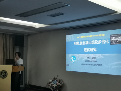 中国水产科学院长江水产科学研究所程佩琳助理研究员(2015届所友,师从刘焕章研究员)分享了鲟鱼类全基因组及多倍化进化研究进展。她在报告中介绍到,我国已经公布了世界上第一个鲟鱼类——小体鲟的全基因组图谱,该项工作填补了全球鲟鱼类全基因组数据的空白,也为鲟鱼类基础理论研究和产业化发展奠定了重要的遗传基础。
