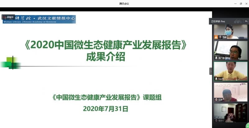7月31日,《2020中国微生态健康产业发展报告》(以下简称“报告”)专家研讨会在线召开。中科院科发局生物技术处处长周桔、中国生物工程学会副秘书长张宏翔研究员、华中科技大学同济医学院营养与食品卫生学系主任杨年红教授、中科院上海巴斯德所微生物发展与健康研究中心主任孟广勋研究员、微康益生菌研究院院长赵斌研究员、湖北大学杨世辉教授等报告专家组成员通过视频出席会议。会议由武汉文献情报中心副主任江洪研究员主持。
