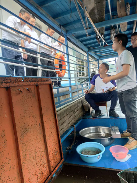 716日,农业农村部部长韩长赋一行调研赤水河禁捕退捕工作。期间,韩部长一行考察了中国科学院水生生物研究所位于赤水市渔政码头的鱼类资源监测点。