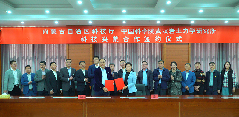 3月28日,为深入贯彻落实中科院关于院地合作助力地方科技创新能力提升和经济社会发展,促进科技成果转移转化的总体目标要求,支撑内蒙古推进“科技兴蒙”行动,构筑并夯实自治区高质量发展之路,武汉岩土所与自治区科技厅在呼和浩特举行了科技合作座谈会并签署“科技兴蒙”合作协议。武汉岩土所所长薛强、副所长盛谦与自治区科技厅厅长孙俊青、副厅长张志宽共同出席签约仪式,武汉岩土所、自治区科技厅相关部门负责人等参加了仪式并座谈交流。