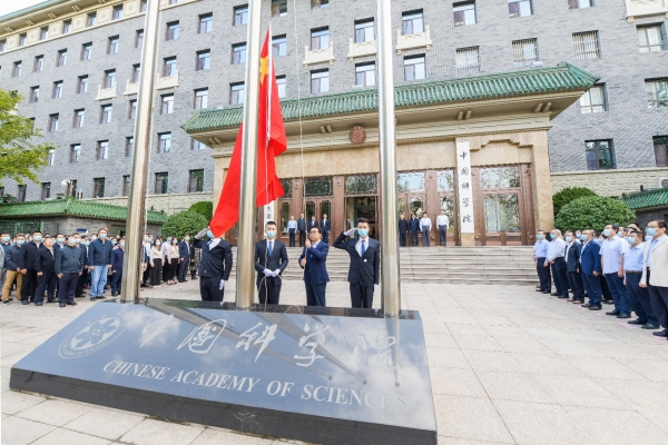 中科院机关各部门、驻院纪检监察组全体职工参加了升国旗仪式。