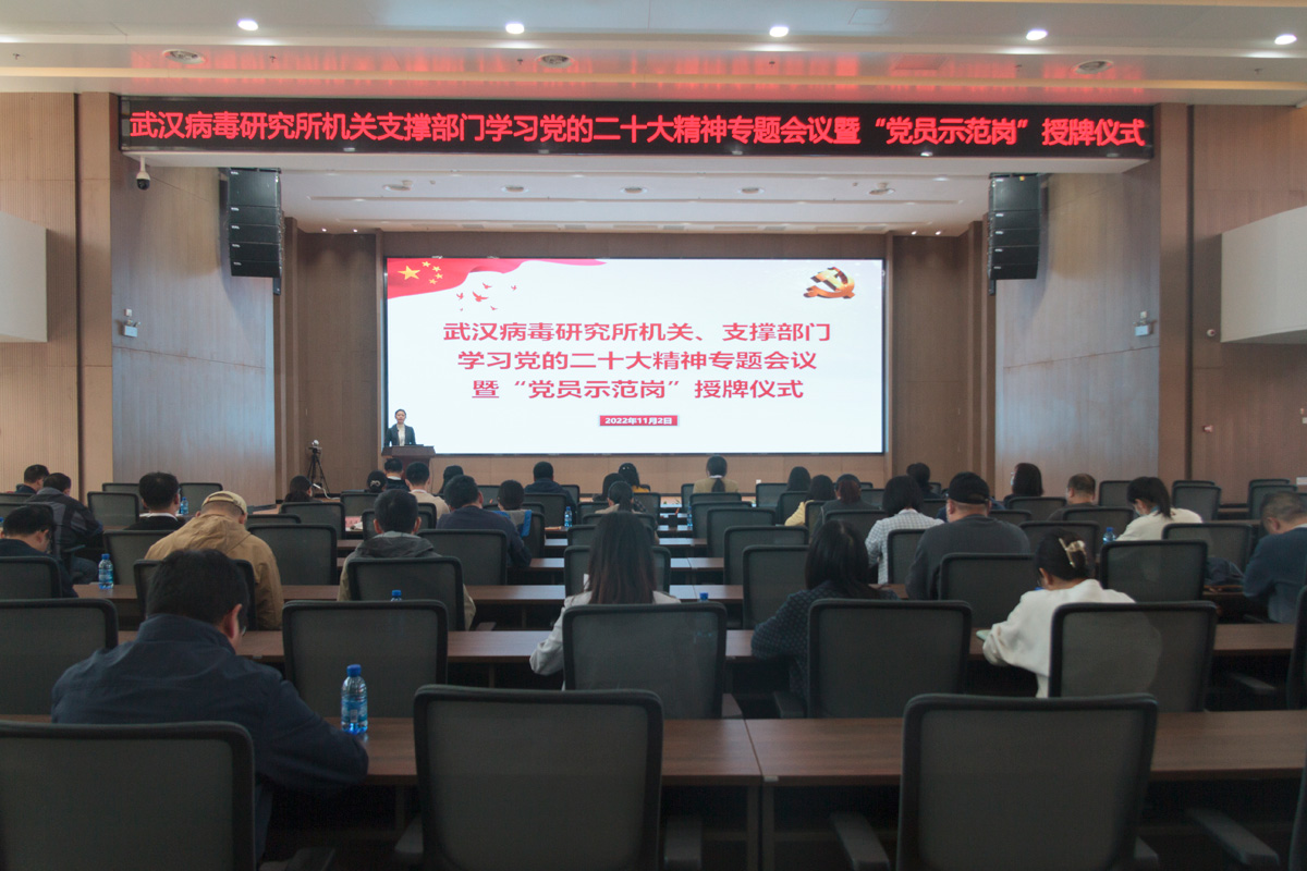 武汉病毒所召开学习党的二十大精神专题会议暨机关、支撑党支部“党员示范岗”授牌仪式