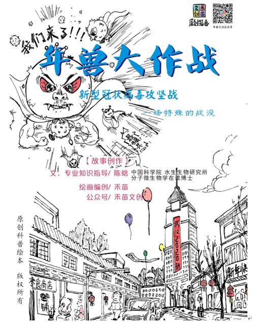 长时间宅在家里,活泼好动的孩子们是最难熬的。陈晗决定创作一个主要针对儿童的科普故事,帮助孩子们了解新型冠状病毒的形态结构、传播途径和预防方法。故事创作完成,陈晗想如果制作成绘本,不是会更受小朋友的欢迎吗?她与当插画作家的朋友一拍即合,经过她们的不懈努力,联手完成了原创漫画绘本《年兽大作战——新型冠状病毒攻坚战》。